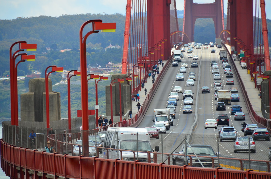 Traffic on the Golden Gate Bridge, San Francisco.